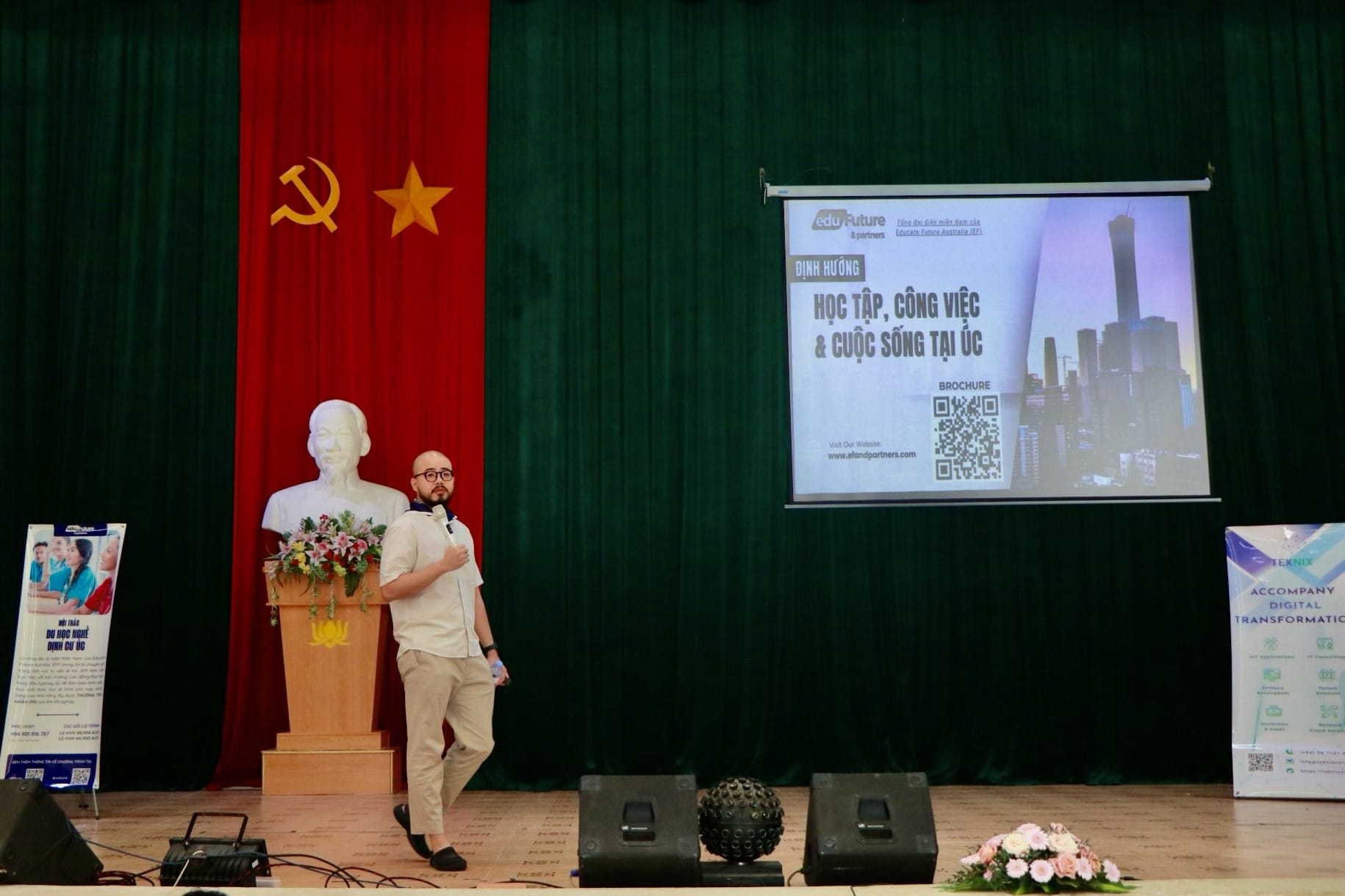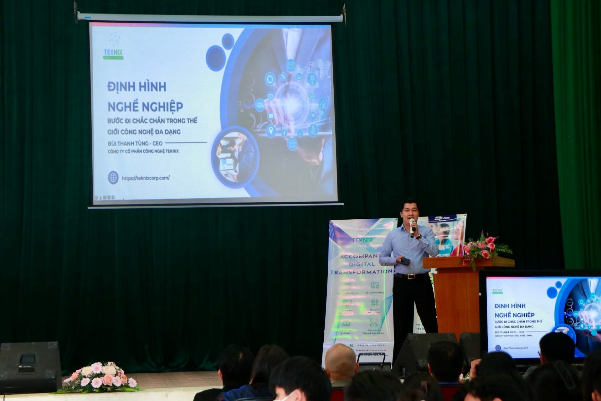Tại chương trình, sinh viên Trường Cao đẳng Đà Lạt đã được nghe diễn giả Bùi Thanh Tùng - CEO Công ty Cổ phần Công nghệ TEKNIX chia sẻ về chủ đề “Định hướng nghề nghiệp trong thế giới công nghệ đa dạng” và diễn giả Trần Hoàng Minh - Giám đốc Công tyTNHH Edu Future & Partners chia sẻ về chủ đề “Định hướng học tập, công việc và cuộc sống tại Úc”.