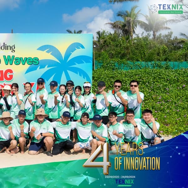 Chuyến đi năm nay không chỉ là dịp để gia đình TekNix-ers nghỉ ngơi, kết nối, mà còn là hành trình kỷ niệm 𝟒 𝐘𝐄𝐀𝐑𝐒 𝐎𝐅 𝐈𝐍𝐍𝐎𝐕𝐀𝐓𝐈𝐎𝐍 - dấu mốc quan trọng trong chặng đường phát triển của TekNix.